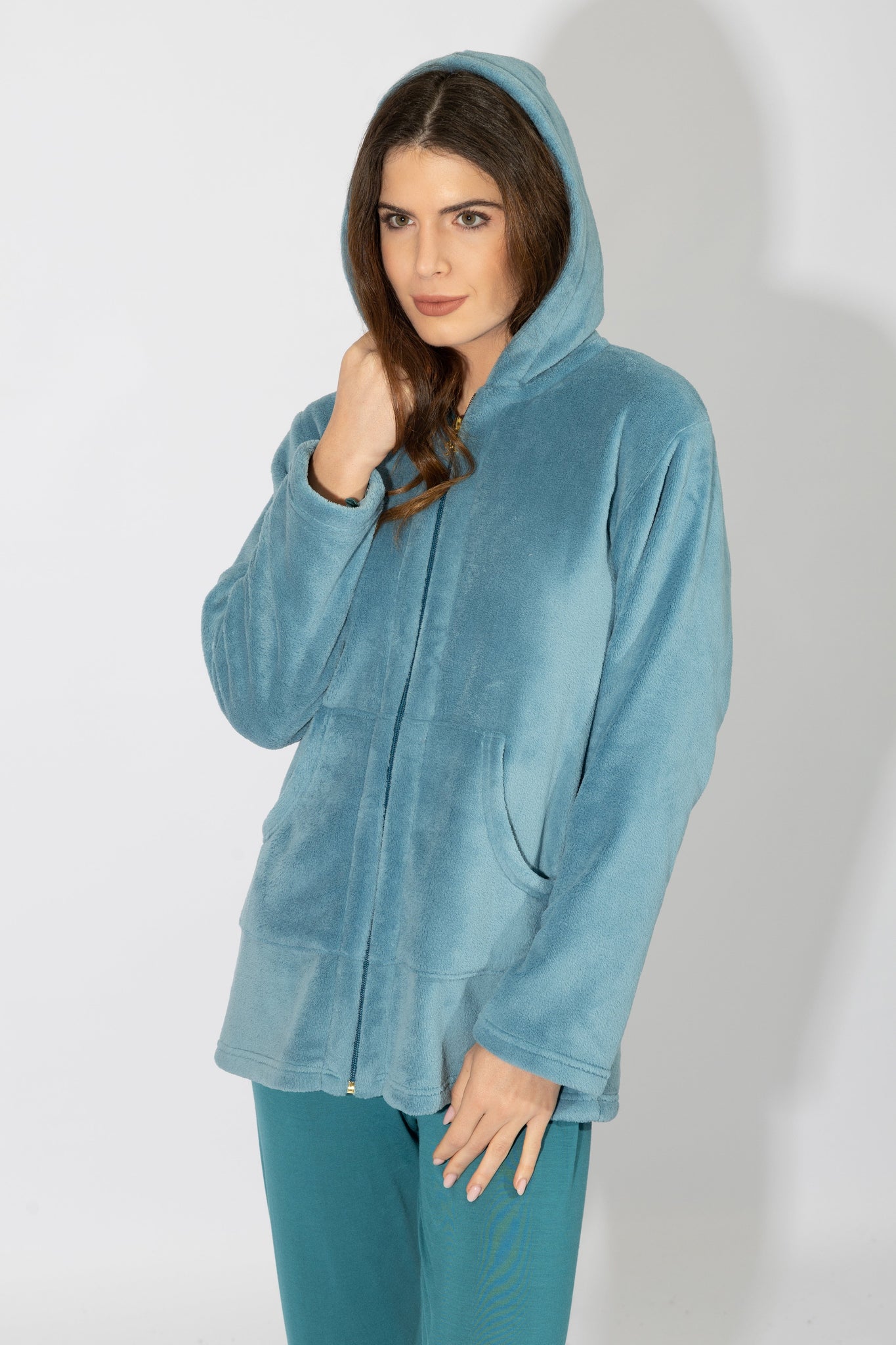 Γυναικεία ρόμπα με φερμουάρ και κουκούλα