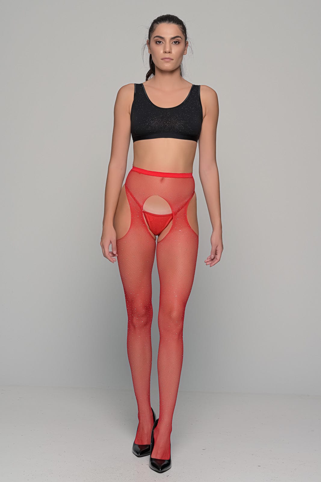 Διχτυωτό καλσόν με άνοιγμα στον καβάλο και εντυπωσιακά strass.