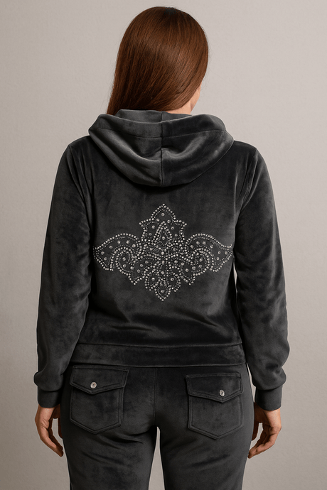 Γυναικεία Βελουτέ Φόρμα "Strass Line" Secret Point Dark Grey | evaunderwear
