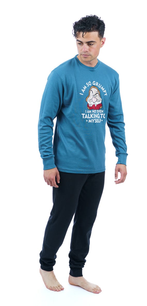 Η ανδρική χειμερινή πιτζάμα αποτελείται απο μπλούζα με σχέδιο "Grumpy" και παντελόνι με λάστιχο στο κάτω μέρος .